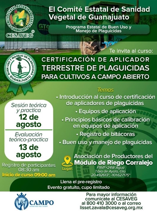 A través de la certificación de aplicador terrestre de plaguicidas, la cual está enfocada a certificar a personas involucradas en la producción agrícola, profesionistas en la sanidad de vegetal, productores, trabajadores agrícolas, aplicadores de plaguicidas y comercializadores de plaguicidas, quienes son evaluados a través de una competencia técnica, emitida por la secretaria del campo (SECAM), estas certificaciones se realizan en diversos municipios de la entidad, abordando temas relacionados con el manejo adecuado de los plaguicidas.