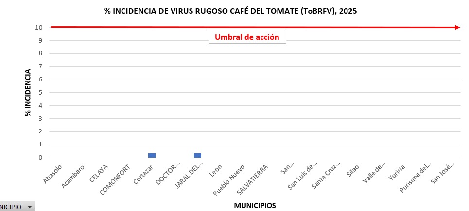 chile (Scirtothrips dorsalis) araña roja (Tetranychus urticae), virus rugoso del tomate