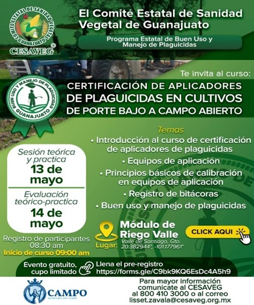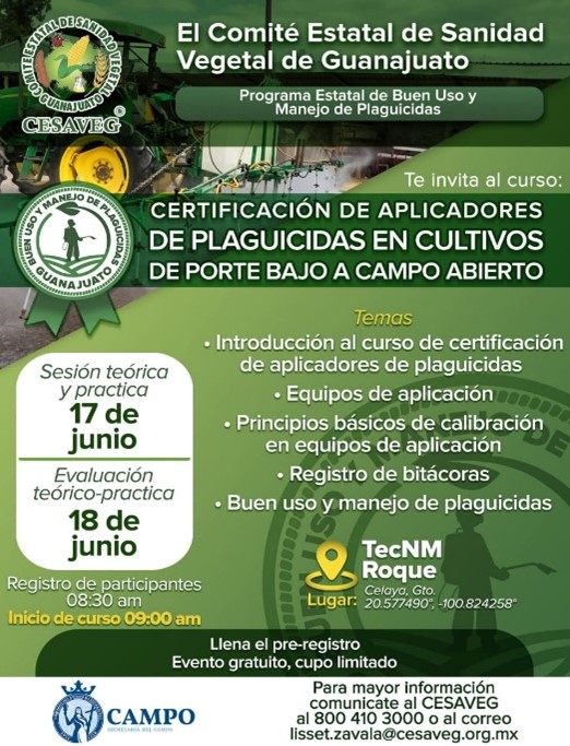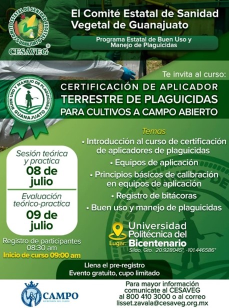 A través de la certificación de aplicador terrestre de plaguicidas, la cual está enfocada a certificar a personas involucradas en la producción agrícola, profesionistas en la sanidad de vegetal, productores, trabajadores agrícolas, aplicadores de plaguicidas y comercializadores de plaguicidas, quienes son evaluados a través de una competencia técnica, emitida por la secretaria del campo (SECAM), estas certificaciones se realizan en diversos municipios de la entidad, abordando temas relacionados con el manejo adecuado de los plaguicidas.